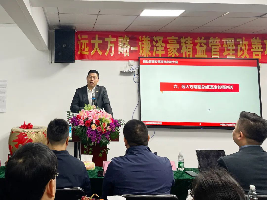 會議上,項目組老師首先向謙澤豪管理團隊對遠大方略的信任表示感謝,企業(yè)經營的本質是以客戶為中心,圍繞客戶價值去建團隊、建流程、搭體系,為客戶創(chuàng)造更大價值才能留住客戶,這也是此次企業(yè)開啟項目的核心。遠大方略項目總監(jiān)強調了此次項目的兩個重要思想,一是全員參與,所有部門所有員工都要參與此次改善;第二個就是要持續(xù)改善,從量變到質變,它有一個過程,需要我們持續(xù)做下去才會發(fā)生質的改變。